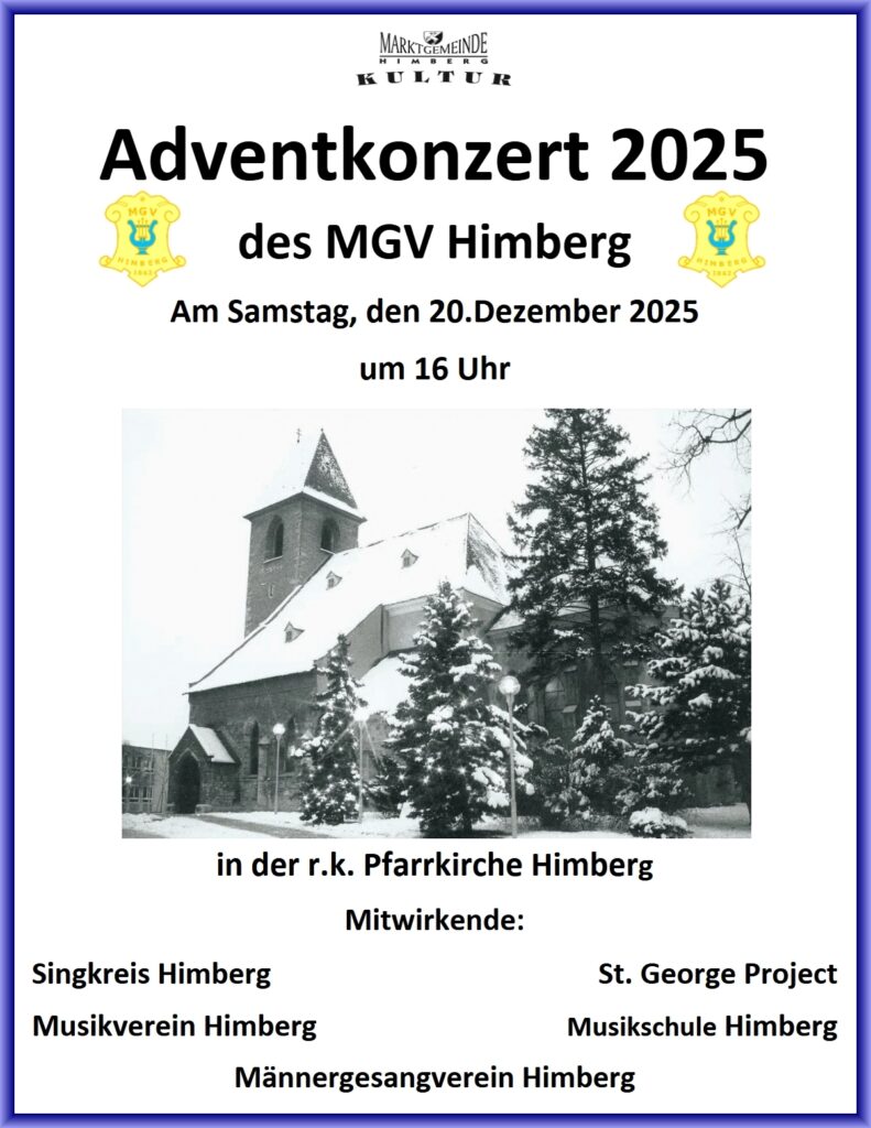 • Einladung zum Adventkonzert des MGV Himberg am 20. Dezember 2025 um 16:00 Uhr in der r.k. Pfarrkirche Himberg